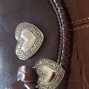 Well made attractive handbag. Cellphone pocket on the exterior. Cute heart shaped accents .