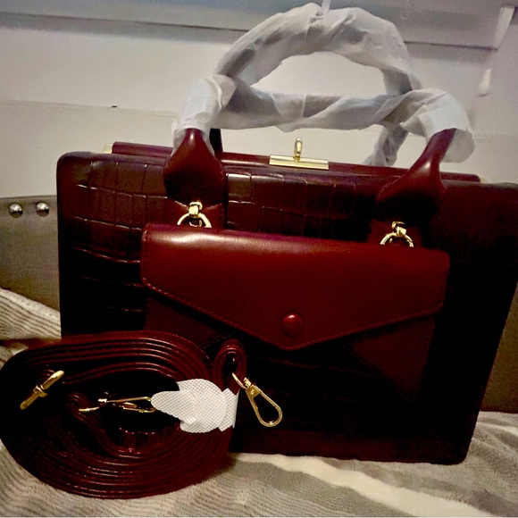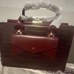 This beautiful wine color doctor bag style purses is amazing quality. The front envelope style detaches from the front.