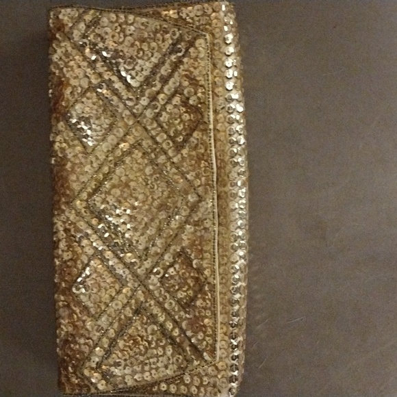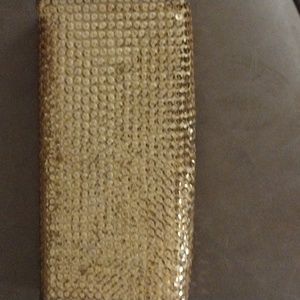gold sequin clutch purse. still in original box.