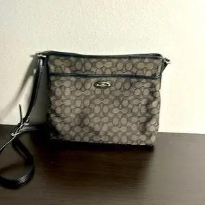 Larger crossbody purse with multiple pockets on side and on deep pocket in the front