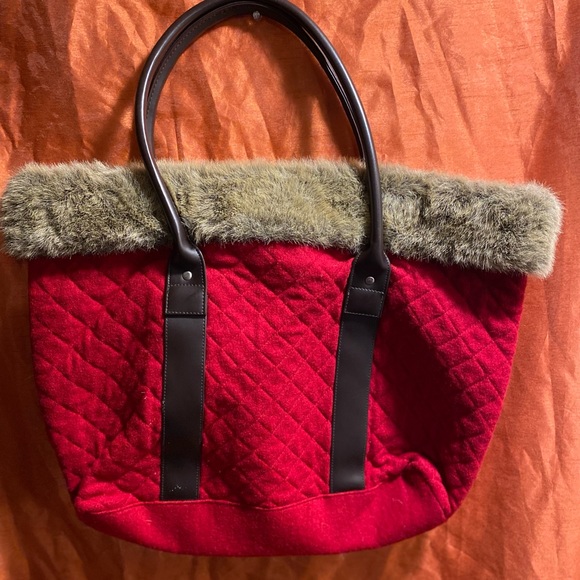 lots of space inside.Soft material and a bright beautiful red color and a touch of fur around the rim