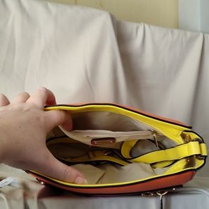 cute cross body purse for spring or summer. has some dents from being stored in a box, see pictures for details, may come out over time with use? never used!