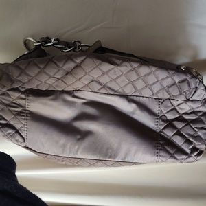 guess shoulder bag, quilted pattern, silver details, from the soho location in NYC.