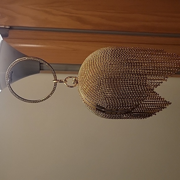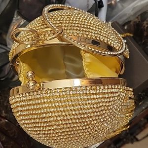 Evening Round ball tasssle bag , diamond clutch purse glitter.