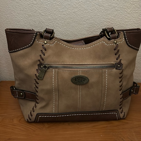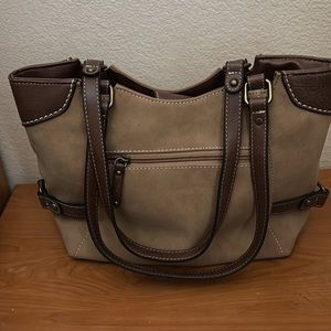 Two toned brown synthetic (vinyl) purse