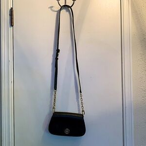 Black Tori Burch purse. Adjustable strap. Gold accent. So pretty and classy. Great condition
