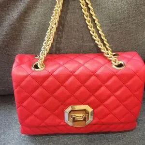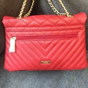 Red purse with adjustable gold chain strap. Purse aldo has compartments.