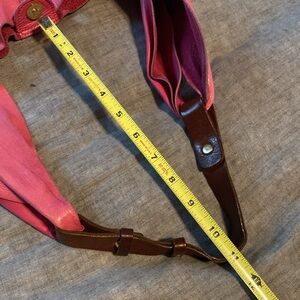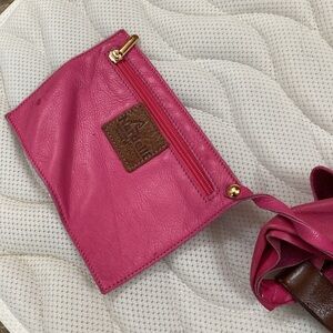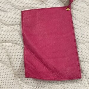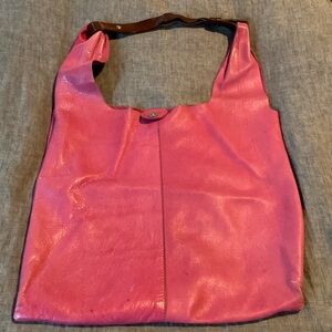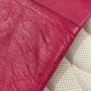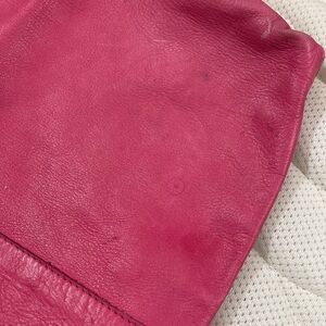 Beautiful pink leather bag. It has been loved and has some flaws in leather as shown in photos. Still in great shape. Real leather and super soft.