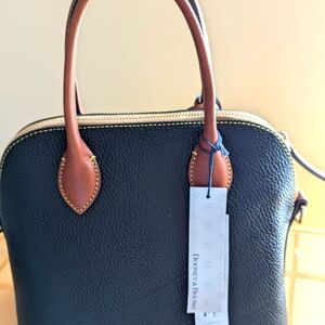 Pebble grain leather, flat structure bottom. Comes with shoulder strap and dust bag. Never used