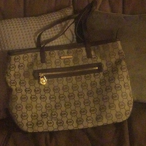 Large Michael Kors tote preloved in good condition a few unnoticeable pen stain inside otherwise good condition. Outside zipper pocket and Pockets inside.