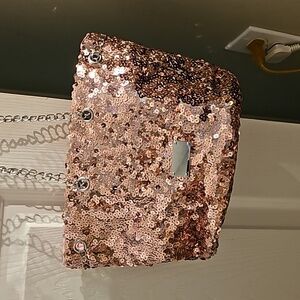 pink sequined bucket style purse.