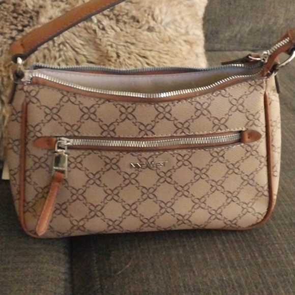 Things to know - Brand new purse never used. one Zipper outside of the purse, one Zipper inside of the purse for a pocket. one pocket inside of the purse without a zipper. A zipper on top of the purse to get inside of the purse. one single shoulder strap. one justable/ removable cross body strap.