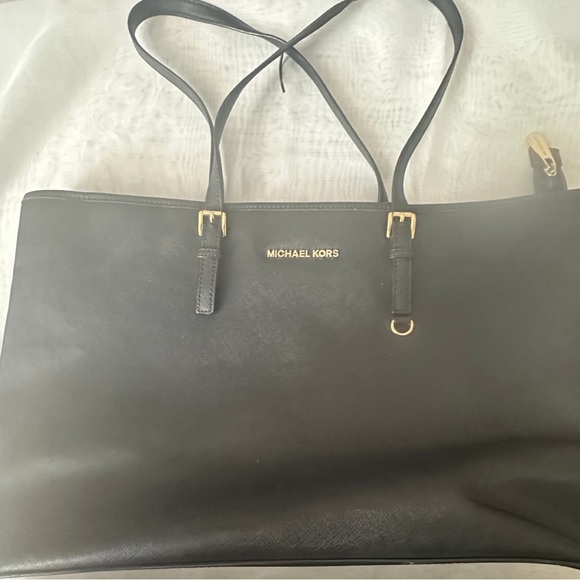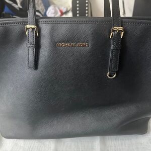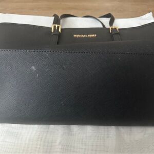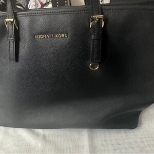 Black Michael Kors bag a few scratches it needs to be clean  has one rip on the strap. Other than that it’s a good condition back.