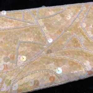 Vintage bead and sequin clutch wallet wristlet satin lining cram iridescent white color like new #vintage #flapper #20sfashion #retro #y2k