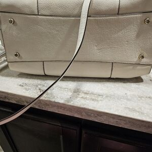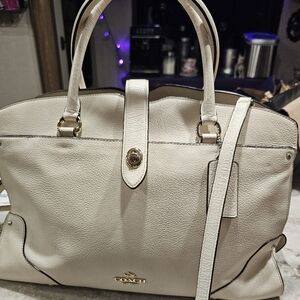 white pebbled coach purse. with three pockets inside and one outside. She's been loved and babied. Great condition.