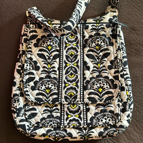 Vera Bradley over the shoulder or crossbody purse. Magnetic flap in the front with a zipper pocket to the main body portion. Back zipper and adjustable strap.