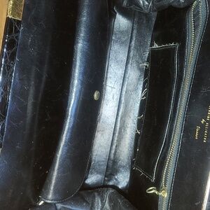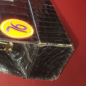 flaws: vintage, end of purse is peeling, along the purse you may see some fading and peeling, one of the metal stands are missing on bottom of purse.