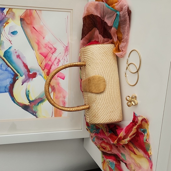 The GO everywhere purse. From the beach to your favorite late night club. Earrings and ring are included for some extra fun...just in case. Never used. Bahay Bag that is made strong with woven straw. Enjoy!
