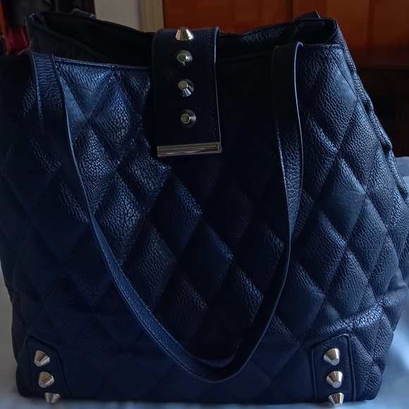 black with spike decorations. 100% polyester. made in China.