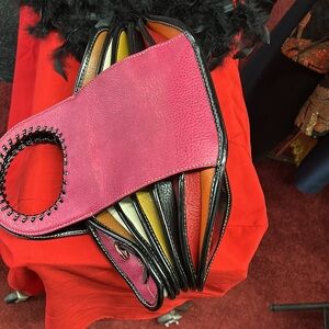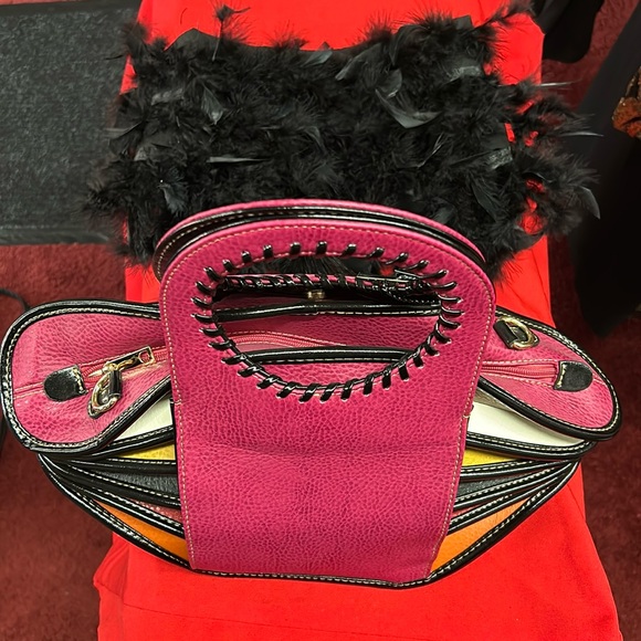 Accordion looking handbag five different compartments for your phone keychain, etc.