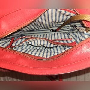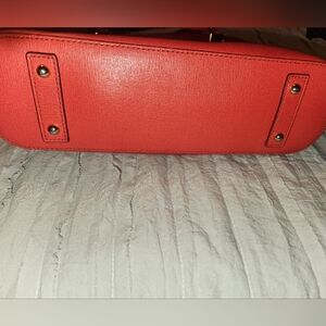 Dooney &Burke purse, great construction and no issues with material. some ink on pinstripes inside of purse. otherwise the purse is in wonderful condition and it is a beautiful red.