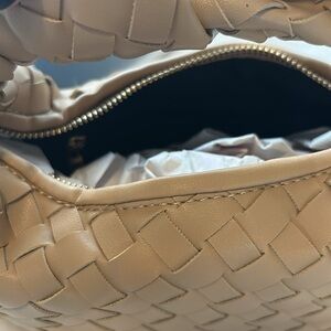 Like new and never used. Side pocket on the inside. Neutral tan color. No rips, tears, or stains. Excellent condition. Make an offer.