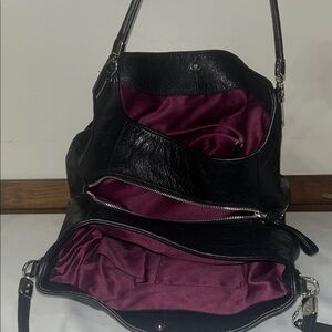 Coach black and leather shoulder bag, purple interior, pre-owned excellent condition