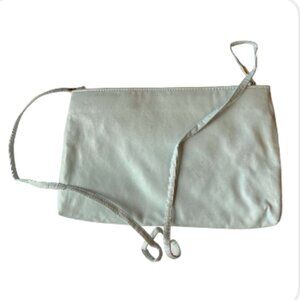 Featuring a sleek light blue design, this purse offers multiple sections for organized storage and a convenient shoulder strap for easy carrying. Stay stylish and organized on-the-go with this practical accessory.