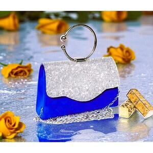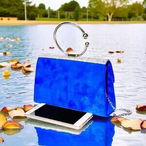 This stunning blue suede purse is sure to turn heads! The elegant design features a beautiful rhinestone flap and a chic silver handle, making it perfect for any occasion. It's in great condition and ready to add a touch of glamour to your wardrobe. Don't miss out – grab it today!