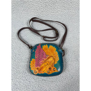 Purse Change Crossbody Angel Embossed Leather Handbag Beautiful