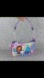 Features a purple strap with clear, light pink heart details. Zip closure.