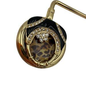 Purse Hanger Black Leopard Print Rhinestones Handbag Hook Portable Brass
