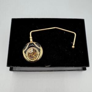 Purse Hanger Black Animal Print Rhinestones Handbag Hook Portable Brass