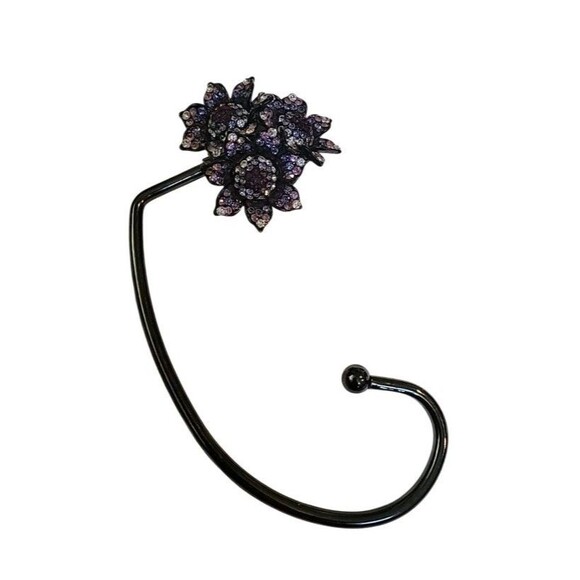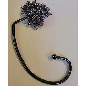 Purse Hanger w/ Triple Purples Flowers Floral Rhinestones Table Swivel
