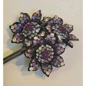 Shades of sparkling purple and clear rhinestones. Appears to be missing a stone.