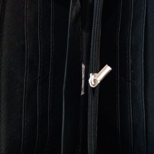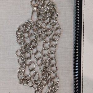 top zip closure crossbody, chain strap, silver hardware, comes with a marching wallet. sleek design, color blocking. NWT and NWOT.