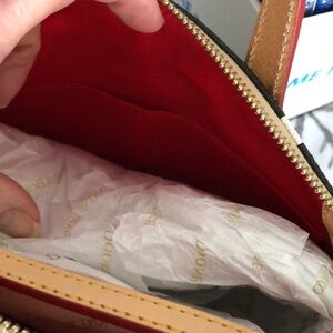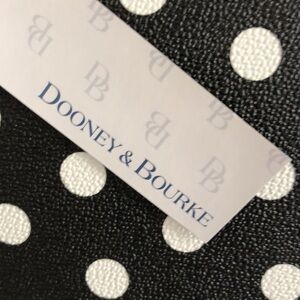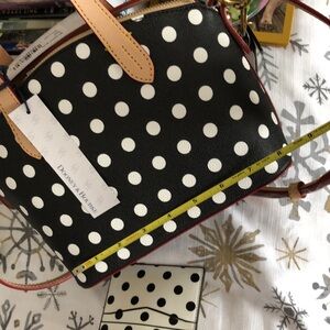 This 3 pc. set I put together is all new with tags. This is a crossbody which makes this bag a dream to carry. Brand of bag is Dooney & Bourke measures about 9 X 7 inches comes with an adorable Fossil moveable DOG keychain and matching white w/ black dots as the dog. Crossbody Bag is Black with white dots. But if you prefer just to purchase crossbody alone let me know. I will list separately. Thanks for visiting my closet! More brands to come