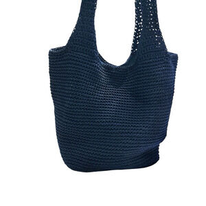 Purse The Sak Crochet Hobo Shoulder Bag Dark Blue Slouchy Inner Zip Pocket Lined