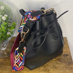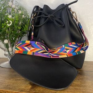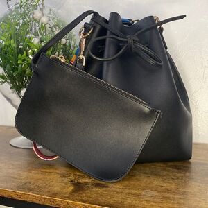 Purse Tote Bag Black Vegan Leather With Carrying Strap Attached Zippered Wallet