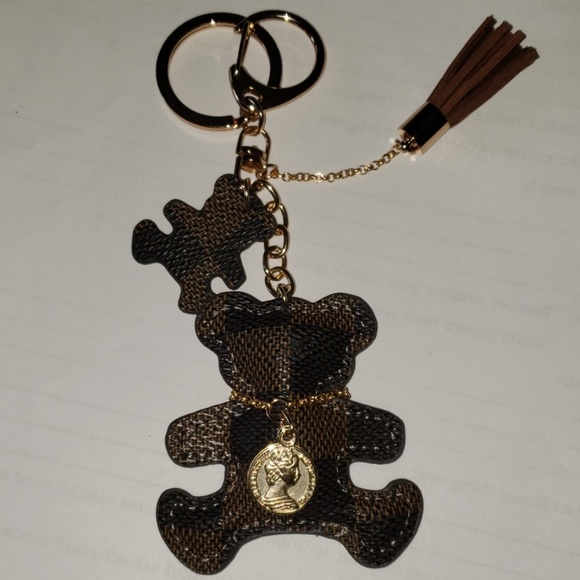 Teddy bear checkered purse charm