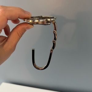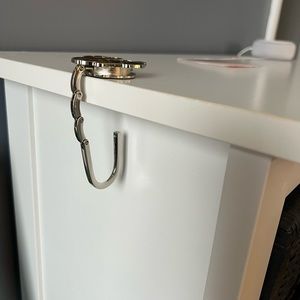 No place to set your purse down? no problem! This hook fits on most tables. made from original coated canvas and metal.