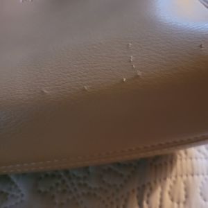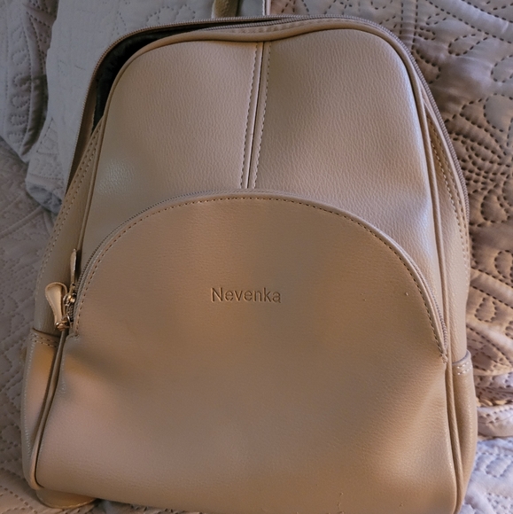 Nevenke Tan medium sized backpack purse. Faux leather, gently used, there is a small scratch at the bottom shown in pictured. scratch is hardly noticeable.