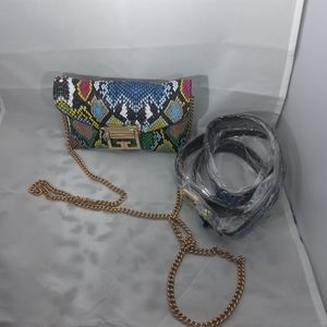 AMAZING FANNY PACK/CROSS BODY MINI SNAKE SKIN BAG WITH METAL BUCKLE BELT