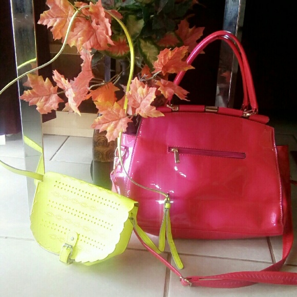 Only Hot pink vinyl hand bag *New