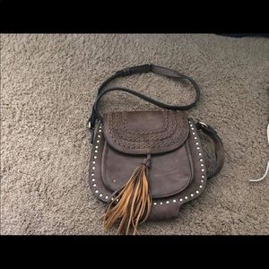 Light brown purse with lace detailed front. Worn as a cross body!! In great shape