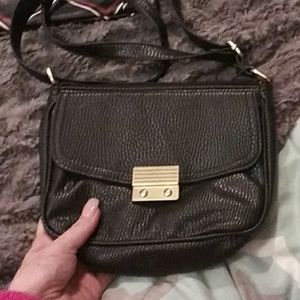 Two for the price of one two crossbody purses both black one with red stripes and gold zippers the other is black with gold embellishment