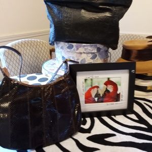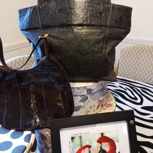 Beautiful collection of a RARE Brown EEL skin purse, along with a custom design black leather tote with Egyptian designs selling them together or separately. purchase them new never use however I don't have the tags still they are in mint condition.