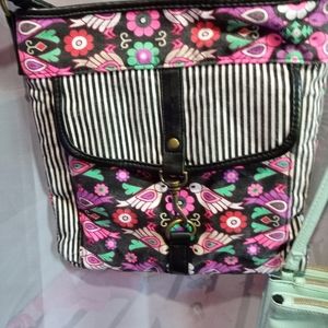 5 of them are misc. They are all in great condition. Over the shoulder. The Coach is yellow I just the lighting from camera. One of handle needs some tending to. I think it was from the way I hung it, it's been loved. It snaps on the sides to make it wider. It's more of a elbow bag as I call them but large. The teal and pink with black hearts are mini crossovers, both in great condition. The larger crossovers have lots of pockets. Wallet has two side and no wear or tear. Smoke/animal free home.