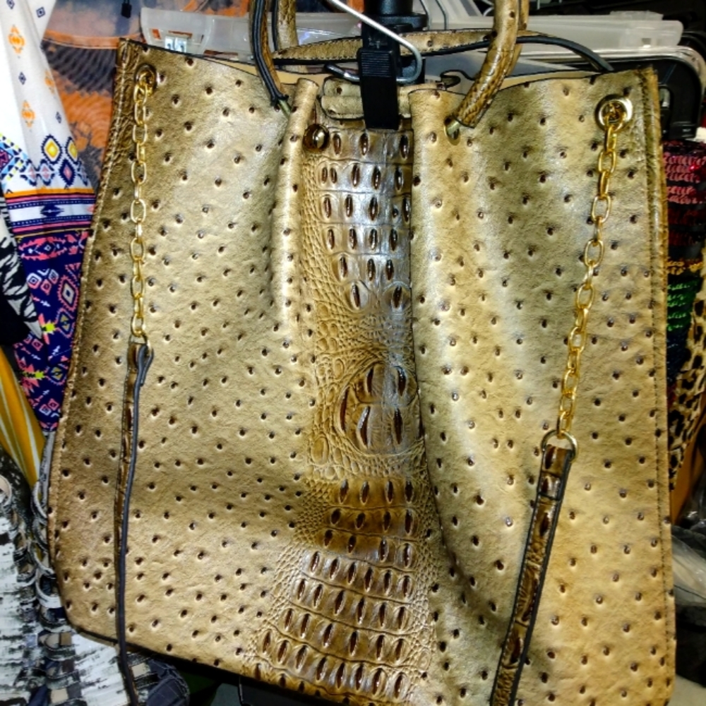 Tan and Brown Circular Short Handle w/Long Shoulder Strap included