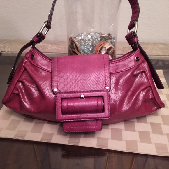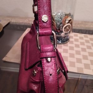 Burgundy leather purse in good condition. Wide is 10 inches. Long is 10 inches.